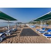 Plaja este privata, cu nisip si pietris. Prosoapele, umbrelutele, sezlongurile sunt gratuite.
