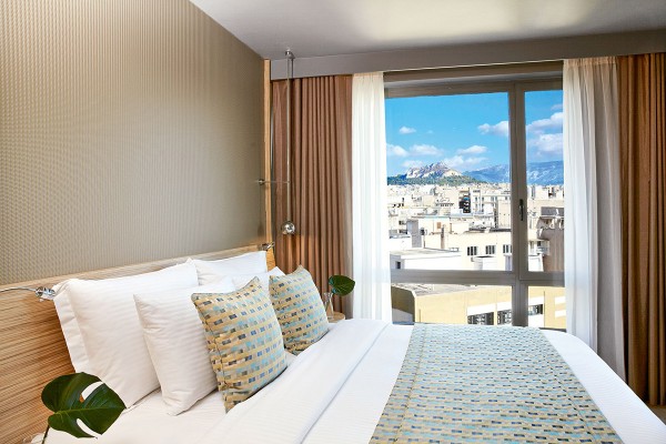 In plus este singurul hotel din Atena care ofera vederi panoramice lde 360 de grade ale Acropolei,dealul Lycabettus si al Golfului Saronic, gratie impresionantului sau restaurant de pe acoperis.Bucurati-va de vederi impresionante la un cocktail sau la o masa incantatoare sau la piscina exterioara.